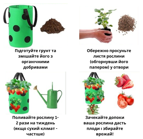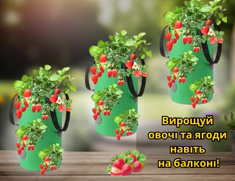 Комплект з 3ох мішків дозволить вам виростити до 8 різновидів овочів та ягід